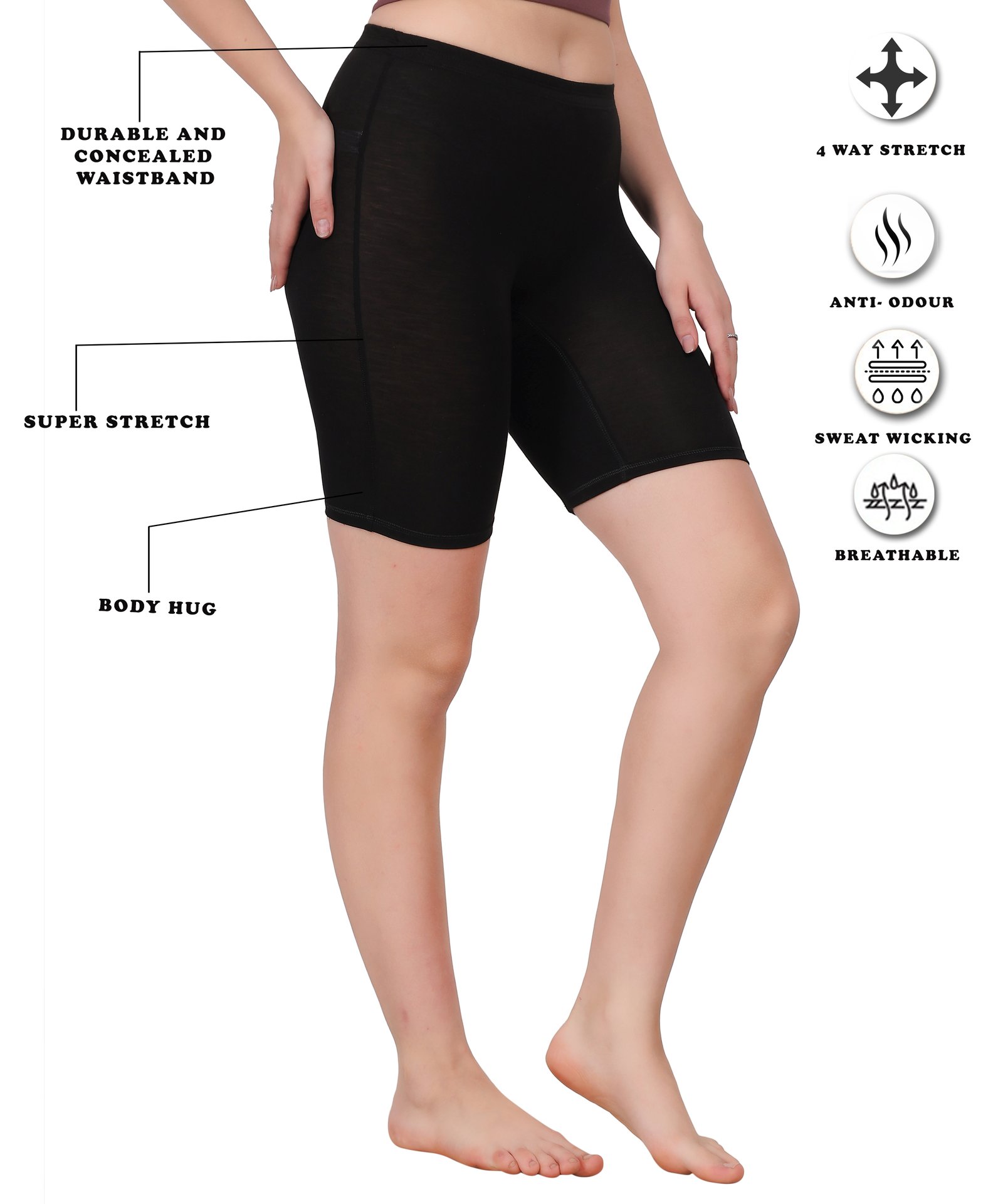 • Designed for ultimate comfort, these cycling shorts are your go-to for wearing under your skirts and dresses.